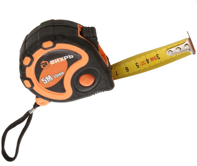 —Рулетка 5м х 19мм с фиксатором Прорезиненный корпус Вихрь