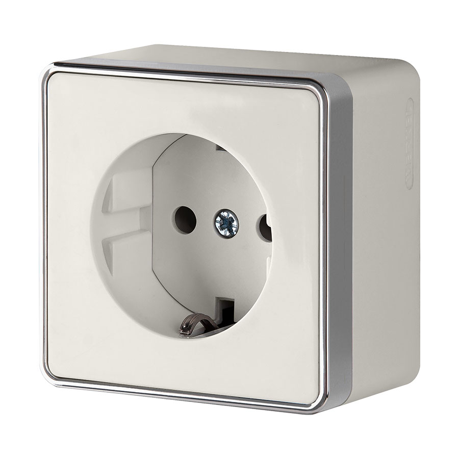 Розетка Наруж  Одинарная с Заземлением+Шторки Слоновая кость IP20 16А 250В Gallant Werkel