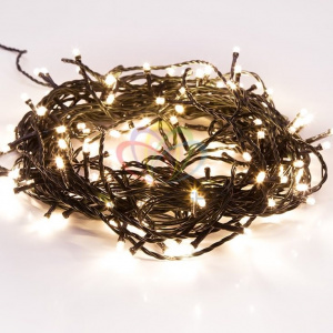 Данная гирлянда имеет длину 10 м, тепло-белый цвет свечения светодиодов.