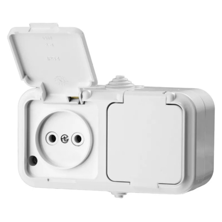 —Розетка Наруж Двойная Без Заземления+Крышка Белый IP 54 16А 250В Пралеска Bylectrica