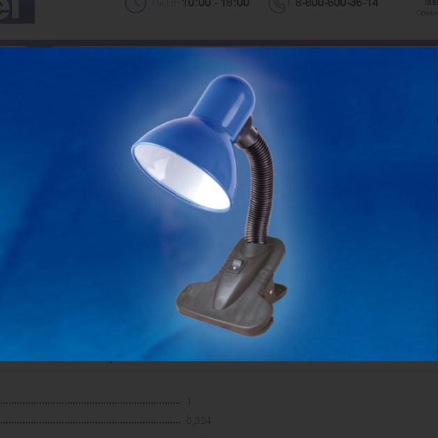 Светильник Настольный с Прищепкой 1х60Вт Е27 Синий 80º IP20 GTL-023-60-220