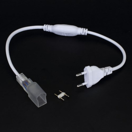 Сетевой шнур для одноцветного светодиодного неона 1425. Ширина контактов 11мм. Напряжение 220V. Размеры 450x35x20мм. Вес 70г. Подключать не более 50м неона!