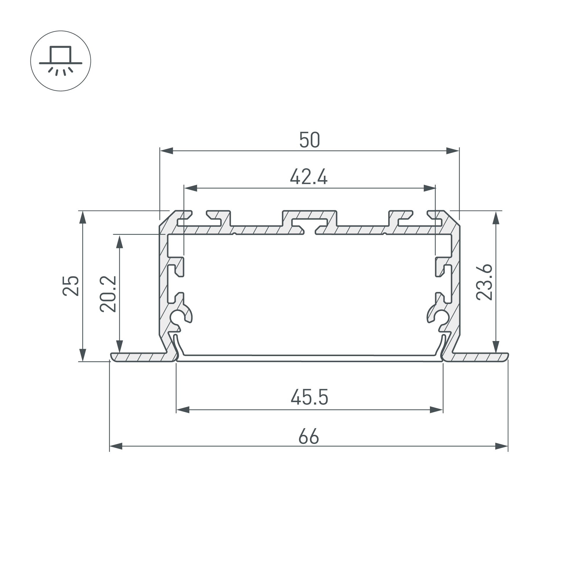 Крепление к гипсокартону с помощью пружинных держателей. Для лент шириной до 40 мм. Размер с фланцами 2000х66х25мм. Цена за 1м.