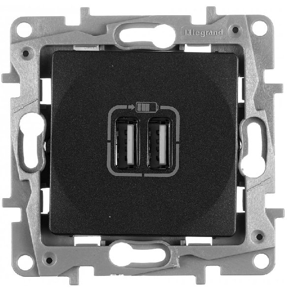 —Зарядное Устройство USB+USB В Рамку Антрацит IP20 2400мА 240В/5В ETIKA Legrand