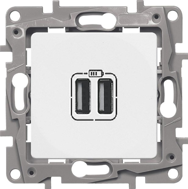 —Зарядное Устройство USB+USB В Рамку Белый IP20 2400мА 240В/5В ETIKA Legrand
