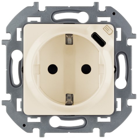 Розетка В Рамку Одинарная с Заземлением+Шторки+USB-C Белый IP20 INSPIRIA Legrand