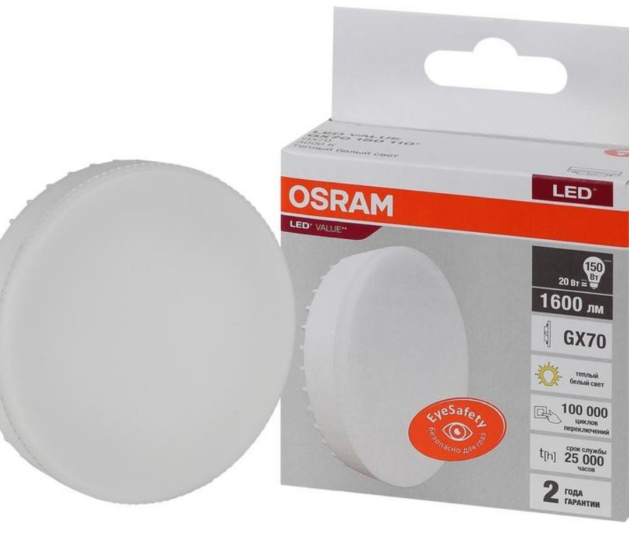 —Лампа LED GX70 Таблетка 220В 20Вт 3000К D124мм Матовая колба 110º 1600Лм (замена 150Вт) OSRAM