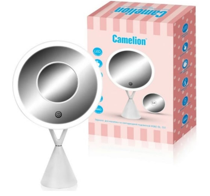 —Зеркало настольное c LED подсветкой Белый 210x340x88 с Сенсор выкл Второе zoom на магните Camelion