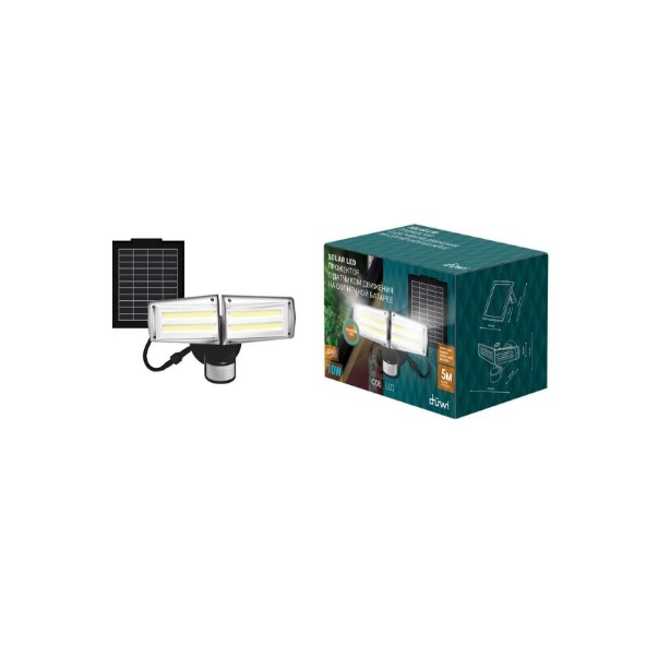 Прожектор с ДД LED 10Вт 6500К 120° 750Лм Черный Солн. Бат. IP65 2xCOB 250х175х140мм Solar Pro duwi
