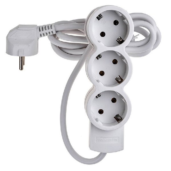 Удлинитель 3 гнезда 1,5 метра С заземлением Белый 16А ПВС 3х1мм² ART