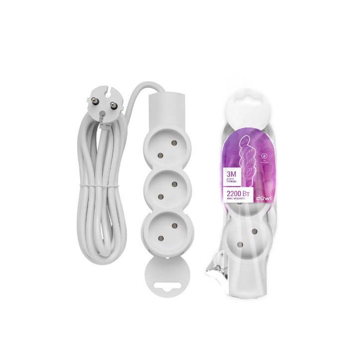 —Удлинитель 3 гнезда 3 метра Без заземления Белый 10А duwi
