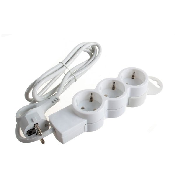 Удлинитель 3 гнезда 1,5 метра С заземлением Белый 16А ПВС 3х1мм² ART