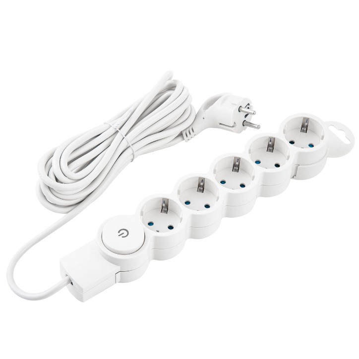 Сетевой Фильтр 5 гнезд 5 метров С заземлением+Выключатель Белый 10А ONE SMARTBUY