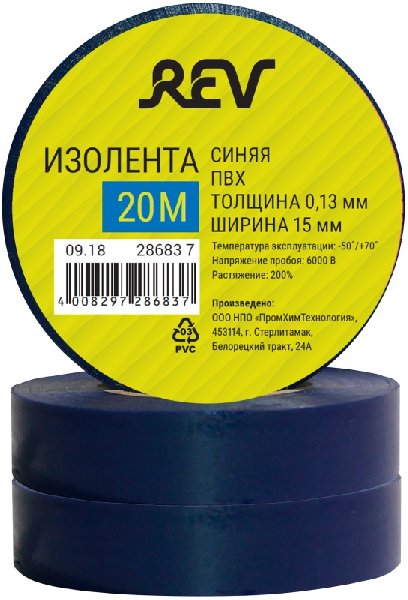 —Изолента ПВХ 15мм 20м Синяя DIY REV