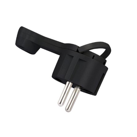 Вилка Угловая Плоская Евро (2 P + заземление) С Откидным Кольцом Черный 16А 250В duwi