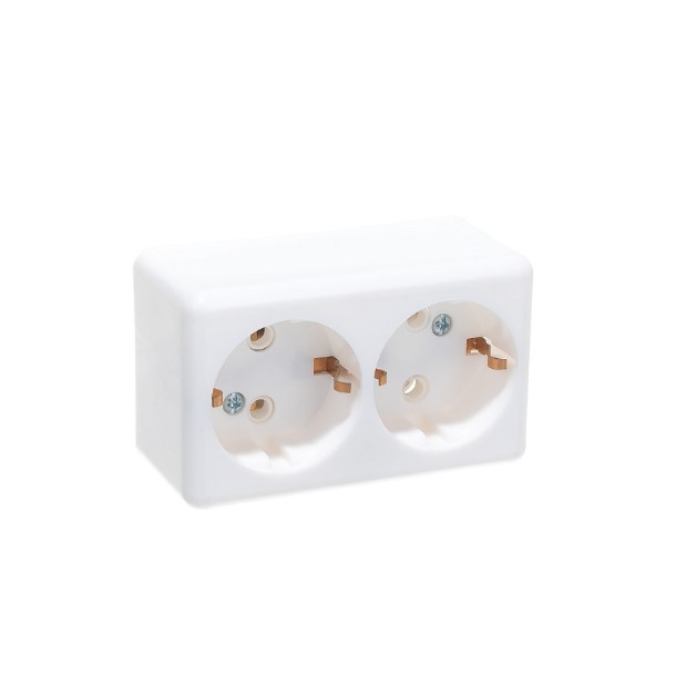 —Розетка Наруж Двойная С Заземлением Белый IP20 16А 250В Basis duwi