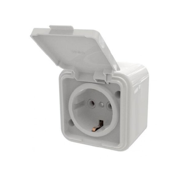 Розетка Наруж Одинарная С Заземлением+Крышка Белый IP 54 16А 250В AtlasDesign Profi54