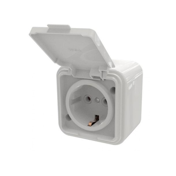 Розетка Наруж Одинарная с Заземлением+Крышка Белый IP54 16А 250В Bylectrica