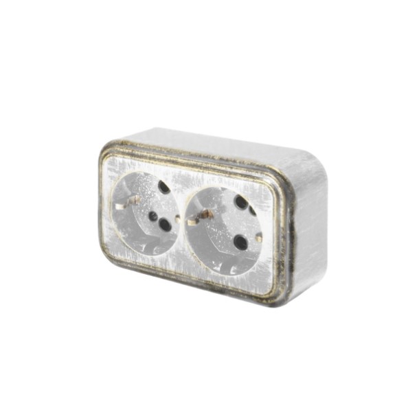 —Розетка Наруж Двойная С Заземлением Белое Золото Патина IP20 16А 250В Palazzo Vintage duwi