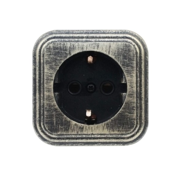 Розетка Наруж Одинарная С Заземлением Бронза Патина IP20 16А 250В Palazzo Vintage duwi