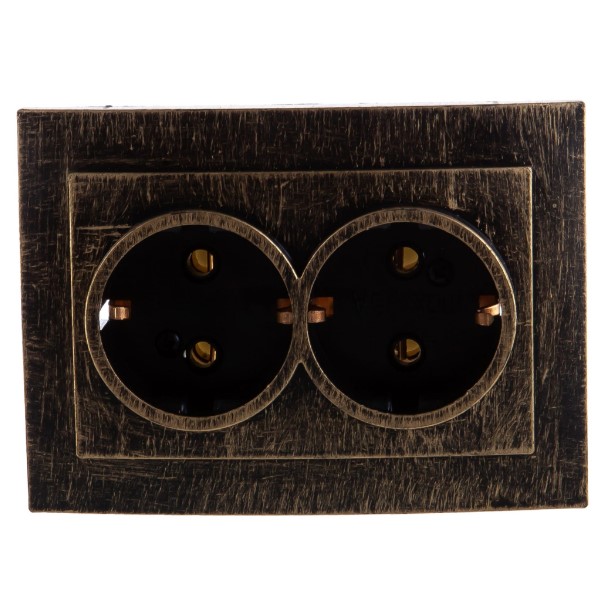 Розетка Встраив Двойная С Заземлением Золото Патина IP20 16А 250В Palazzo Vintage duwi