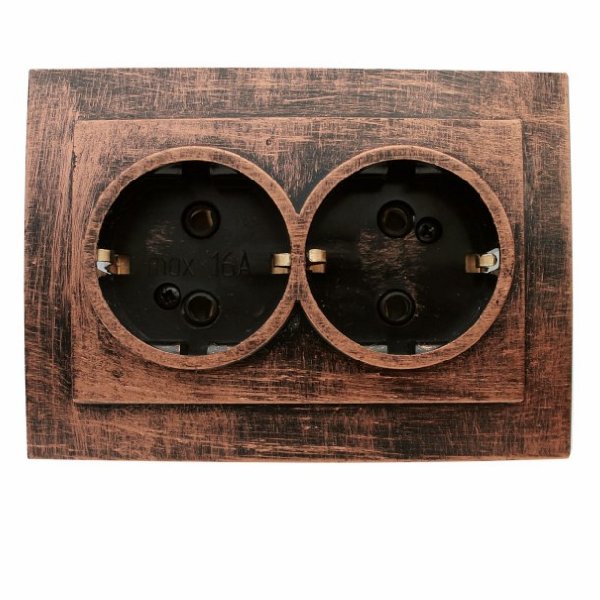 —Розетка Встраив Двойная С Заземлением Медь Патина IP20 16А 250В Palazzo Vintage duwi
