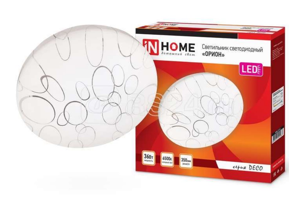 —Светильник Накладной Круг LED 1х36Вт 6500К 2340лм Белый 350х55мм 120º IP40 ОРИОН IN HOME