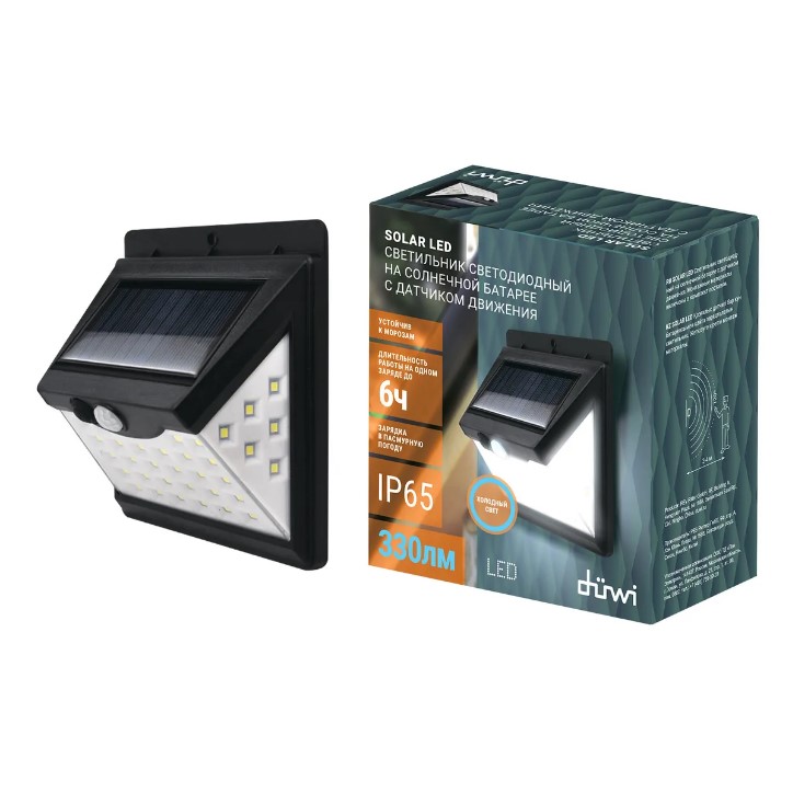 —Светильник Фасадный С ДД LED 8Вт 6500К Черный Солн.Бат. IP65 Solar duwi