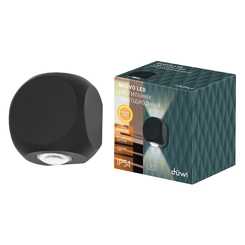—Светильник Фасадный 2хLED 3000К Черный 90х90х55мм IP65 NUOVO duwi