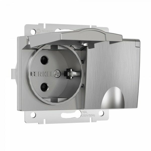 —Розетка В Рамку Двойная с Заземлением + Шторки + Крышка Серебряный рифл IP44 16А 250В Универс Werkel