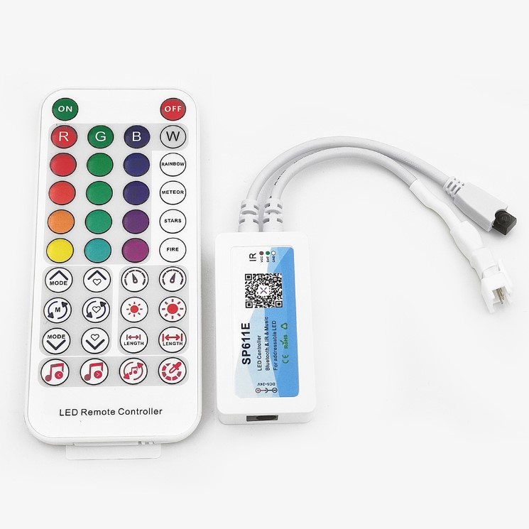 Контроллер SPI RGB c Радио Пультом Кнопки Белый 5-24В Бегущий огонь SP611E REDIGLE (50)