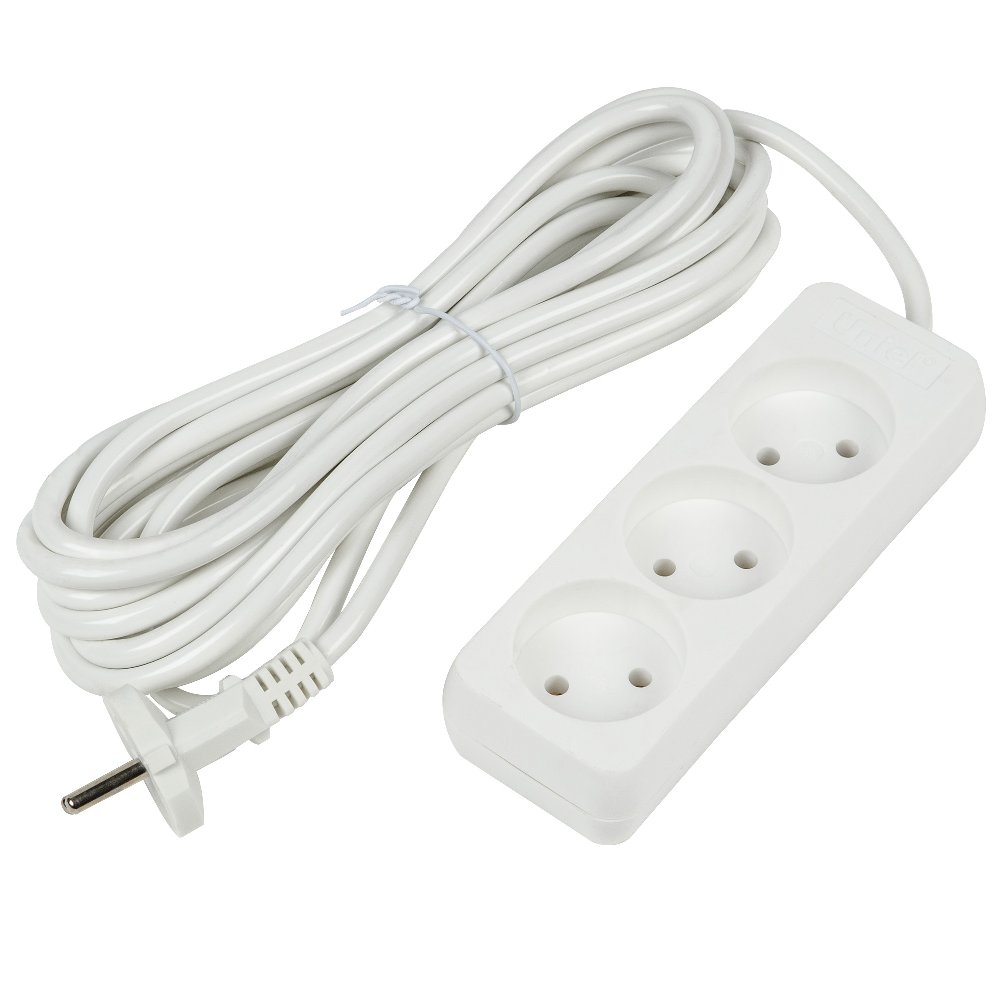 —Удлинитель 3 гнезда 5 метров Без заземления 2х0,75мм² 10A Белый Ultra Uniel