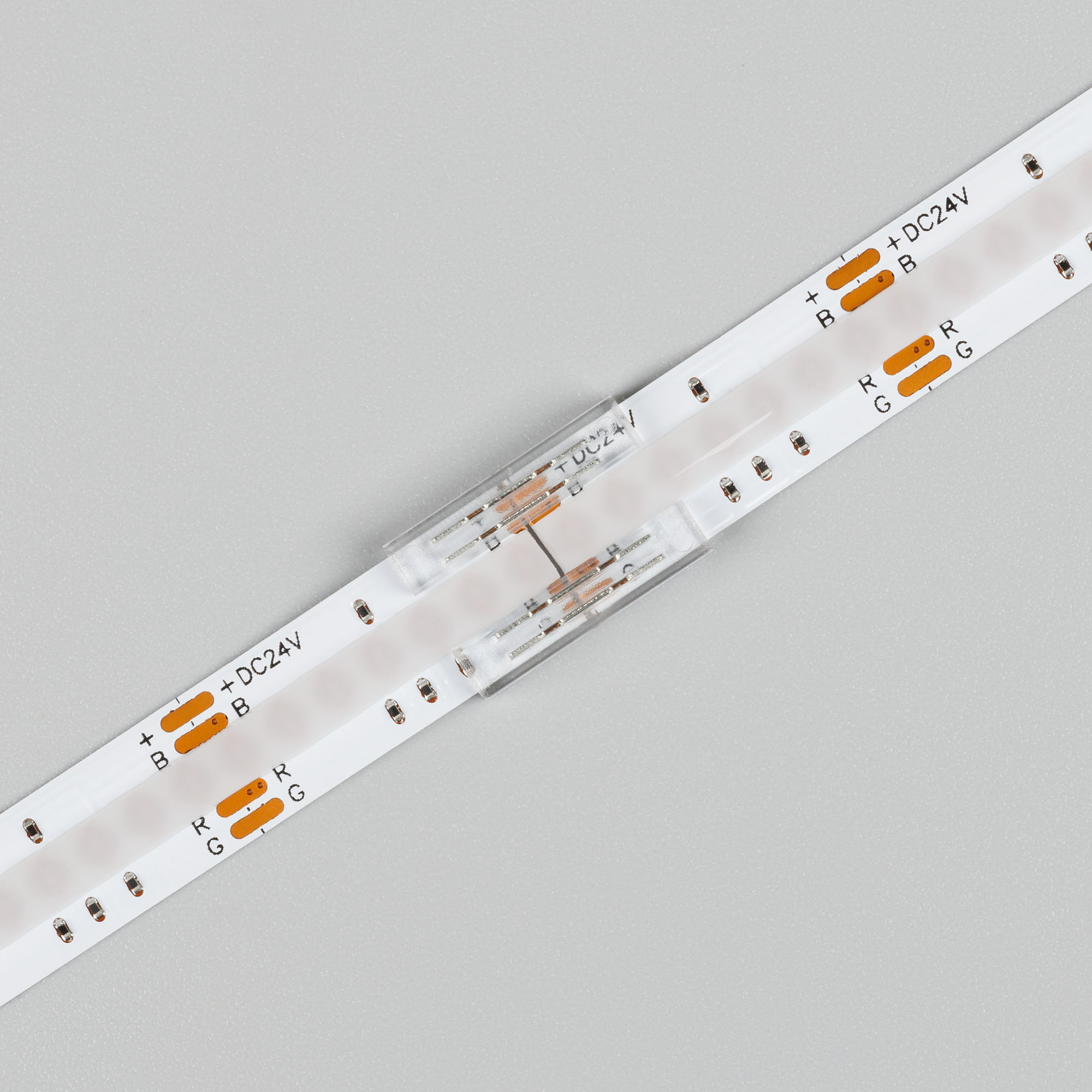 Одиночный коннектор для соединения 2-х отрезков открытых IP20 COB лент RGB и MIX свечений, шириной 10 мм. Материал - прозрачный пластик. Обеспечивает соединение без видимых разрывов. Максимальный допустимый ток 3 А, номинальное напряжение 24 В, степень защиты IP20. Цена за 1шт.