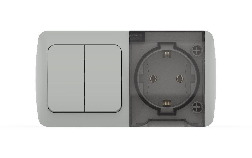 Блок Электроустановки Наружний Двухклавишный с Крышкой С заземлением