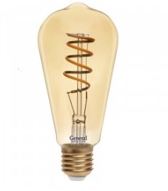 Лампа LED  E27 7W 2700K 2K 64x140 филамент (нитевидная) золотая 655306 General LOFT ST64SS