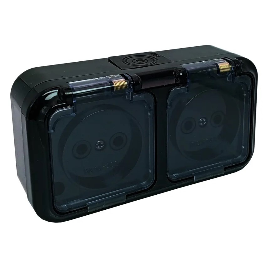 —Розетка Наруж Двойная Без Заземления+Крышка Черный IP 54 16А 250В Пралеска Bylectrica