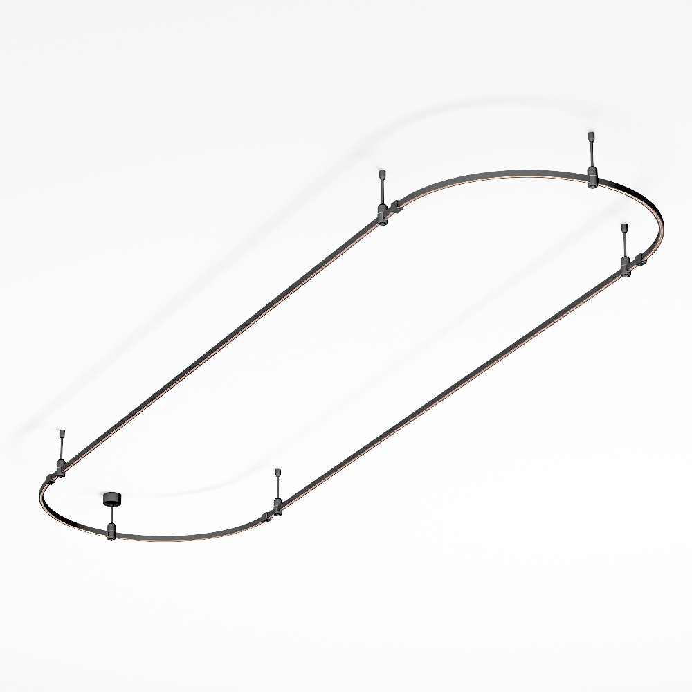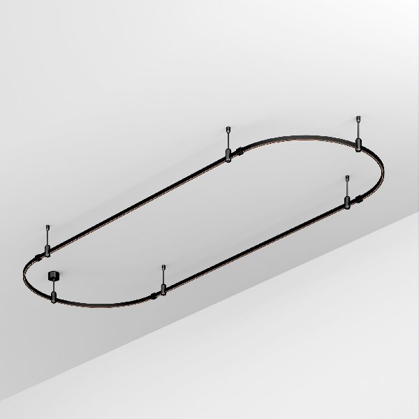 Подвесная конструкция APRIORI, форма овал. В комплекте треки с аксессуарами и жесткими подвесами длиной 200мм. DC48V. Материал алюминий, цвет черный. Размер ДxШxВ: 3000x1000x22мм. Светильники и источники питания приобретаются отдельно.