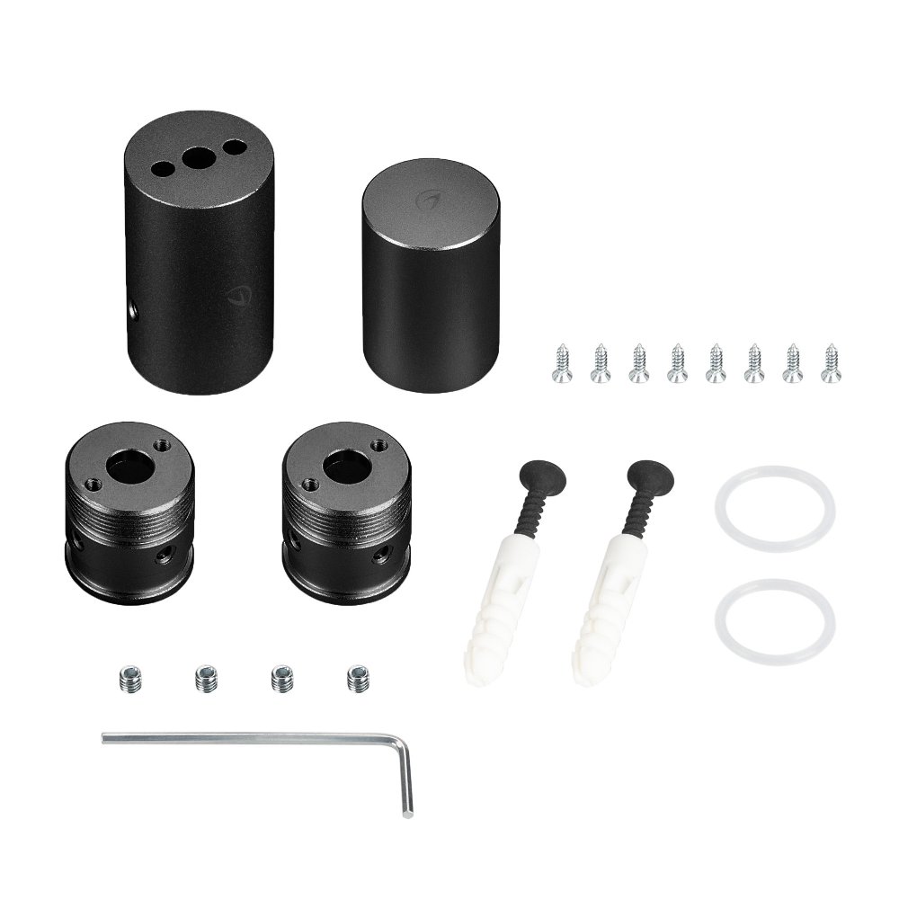 Цвет Черный. Применяется в сочетании с пластиковыми трубками. В комплекте потолочное крепление, торцевая заглушка, 2 шурупа с дюбелями, 2 уплотнительных кольца и шестигранный ключ для фиксации неона в креплениях.