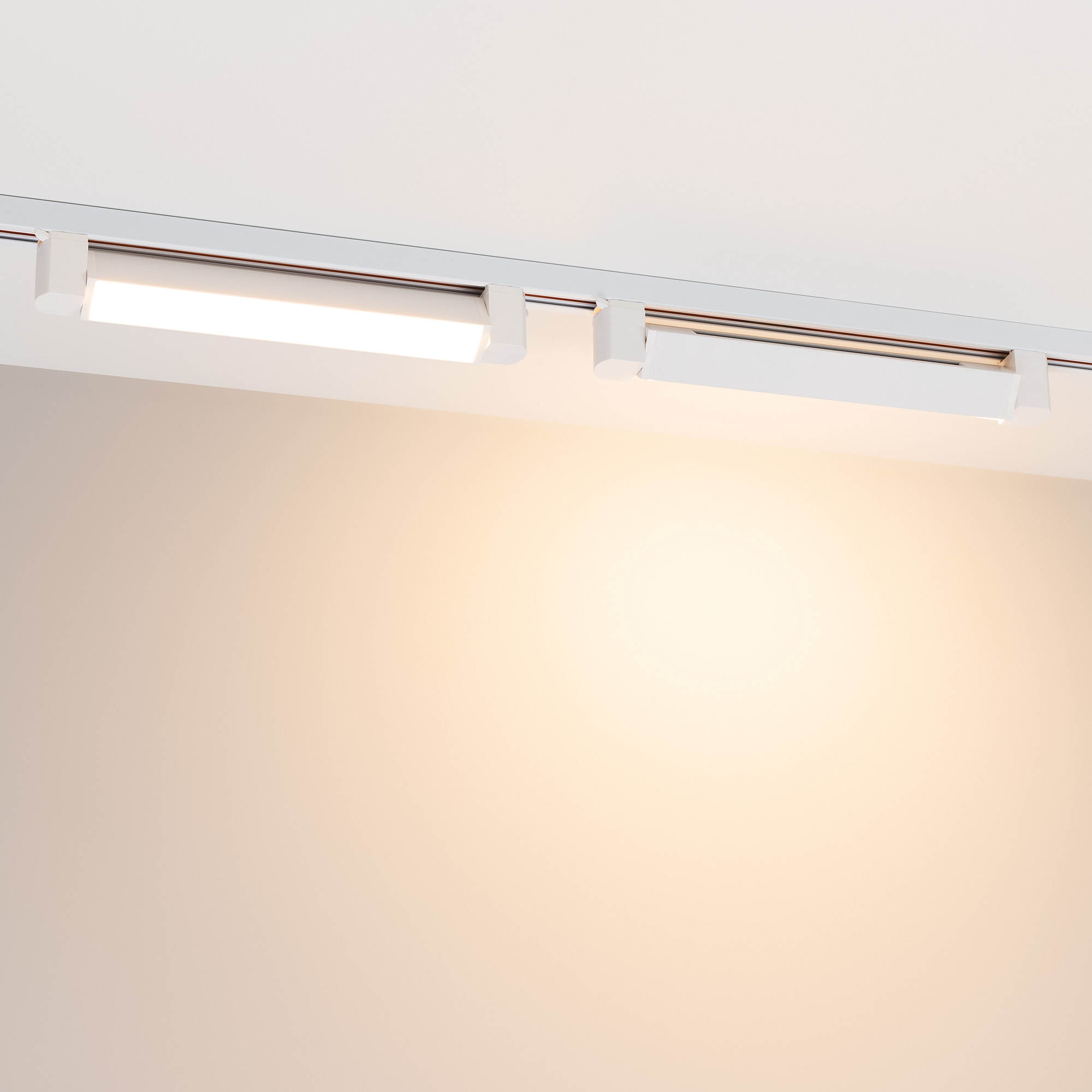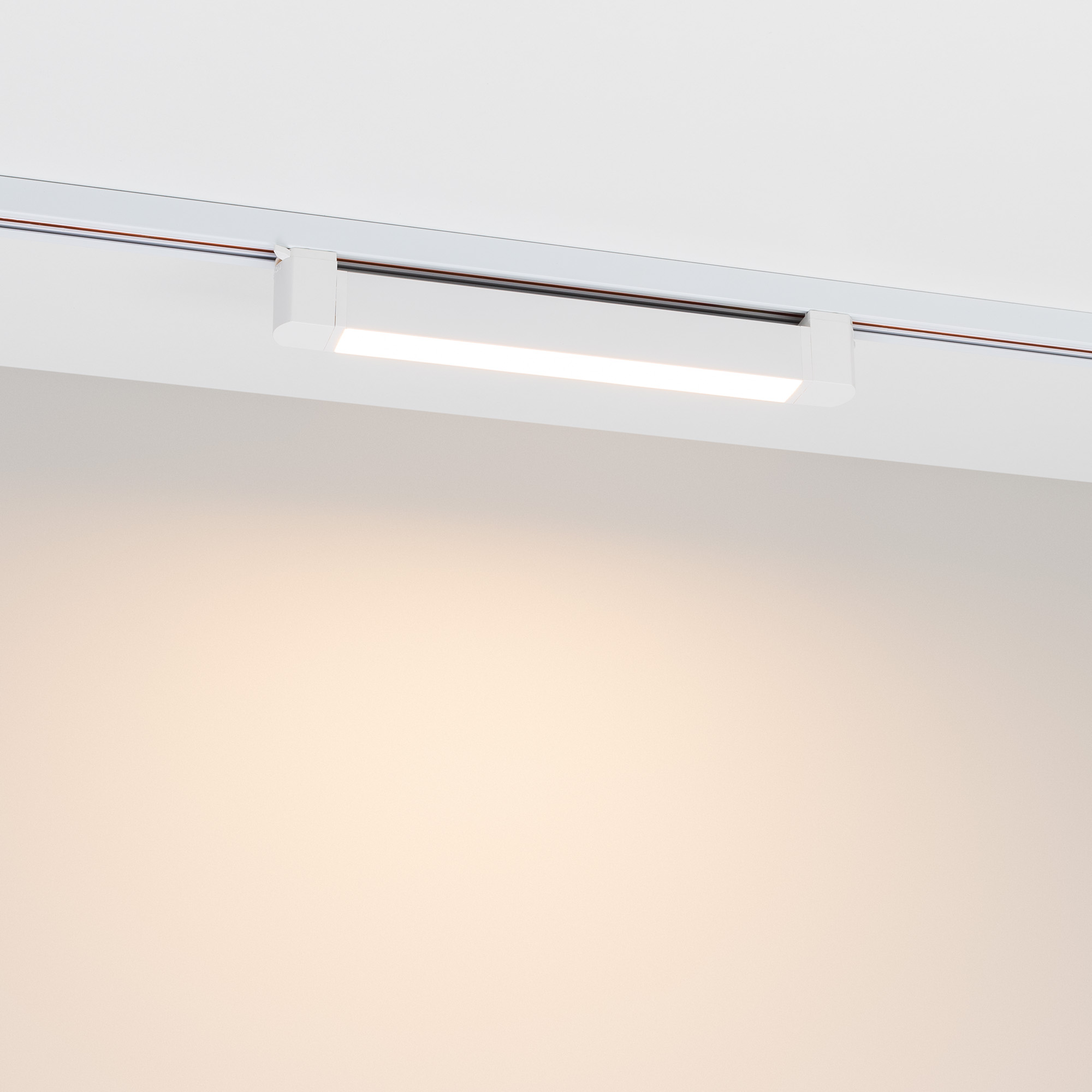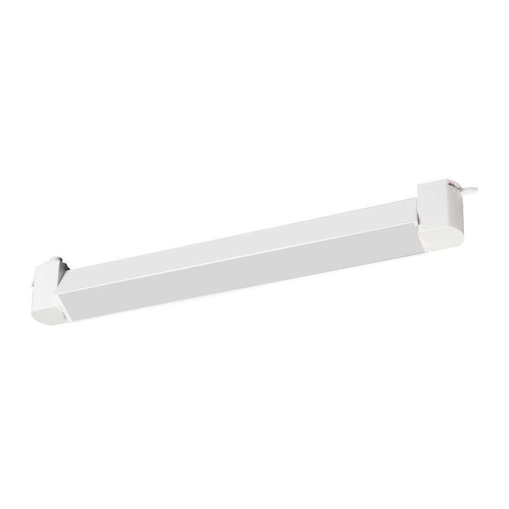 Светильник подвесной для треков/шин 2 провода. Угол поворота светильника 90° (45°+45°). Мощность 10 Вт, св. поток 800 лм, 80 лм/Вт, дневной 4000 K, CRI>90, угол 100°, напряжение питания 230 В. Белый корпус из алюминия, материал рассеивателя PC, степень защиты IP20.  Размер: длина 343 мм, ширина 33 мм, высота 50 мм. Монтаж на трек 1-фазный. Драйвер встроенный, пульсация <1%.