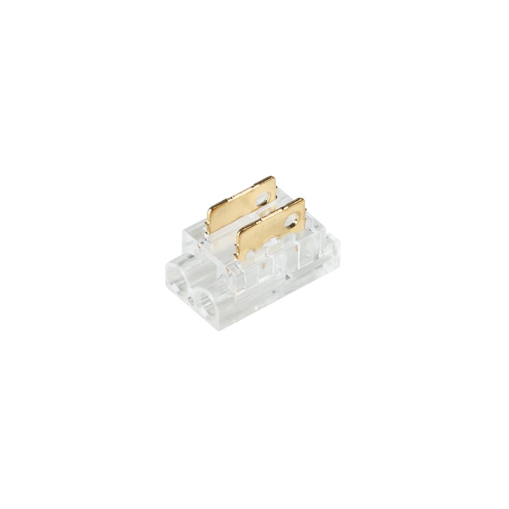 Одиночный коннектор для подключения питания к открытым светодиодным одноцветным лентам (2216, 2835, COB) шириной 8 мм. Материал - прозрачный пластик. Обеспечивает соединение без видимых разрывов. Максимальный допустимый ток 3 А, максимальное напряжение 24 В, степень защиты IP20. Цена за 1шт, 10шт/пакет.