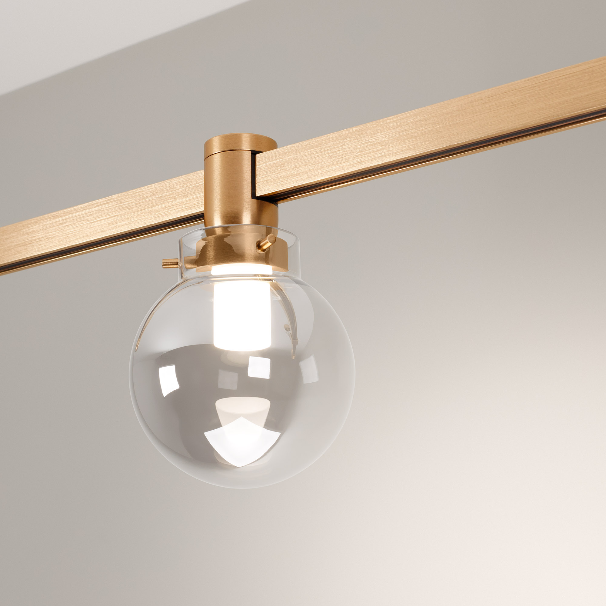 Светильник для треков APRIORI шириной 17 мм. Мощность 5 Вт, св. поток 360 лм, 72 лм/Вт, дневной 4000 K, CRI>90, угол 85°, напряжение питания 48 В. Круглый корпус из алюминия, гальванизированного в цвет светлое золото, экран прозрачное стекло, степень защиты IP20. Размер: диаметр 110 мм, высота 170 мм. Монтаж на трек APRIORI 17 мм. Пульсация <1%. Возможно диммирование по ШИМ (PWM) или не адресное управление при использовании диммируемого драйвера Dali, 0-10V, TRIAC.
