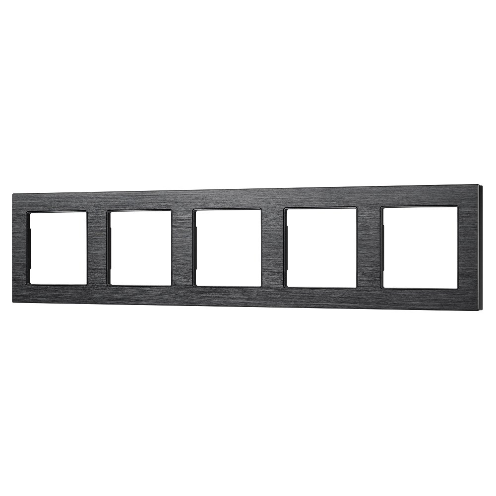 Рамка алюминиевая на 5 пост, под встраиваемый механизм (квадрат). Цвет - черный.  Ориентации монтажа - горизонтальная.
