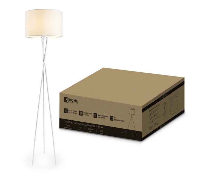 —Торшер под лампу ТНО 04-Е27-NW 230В бежевый абажур, белая тренога IN HOME