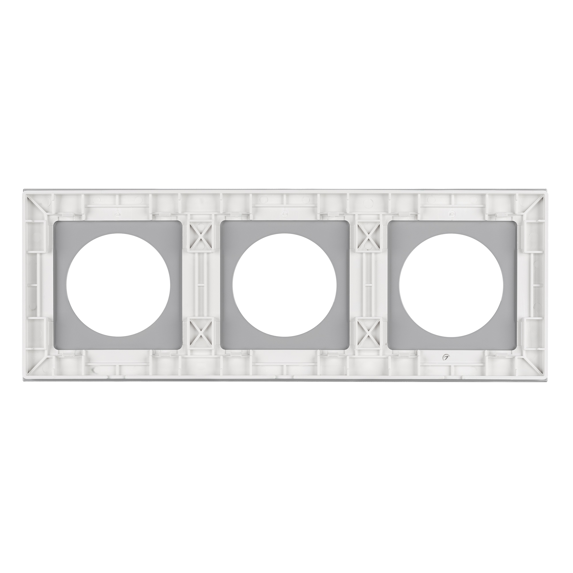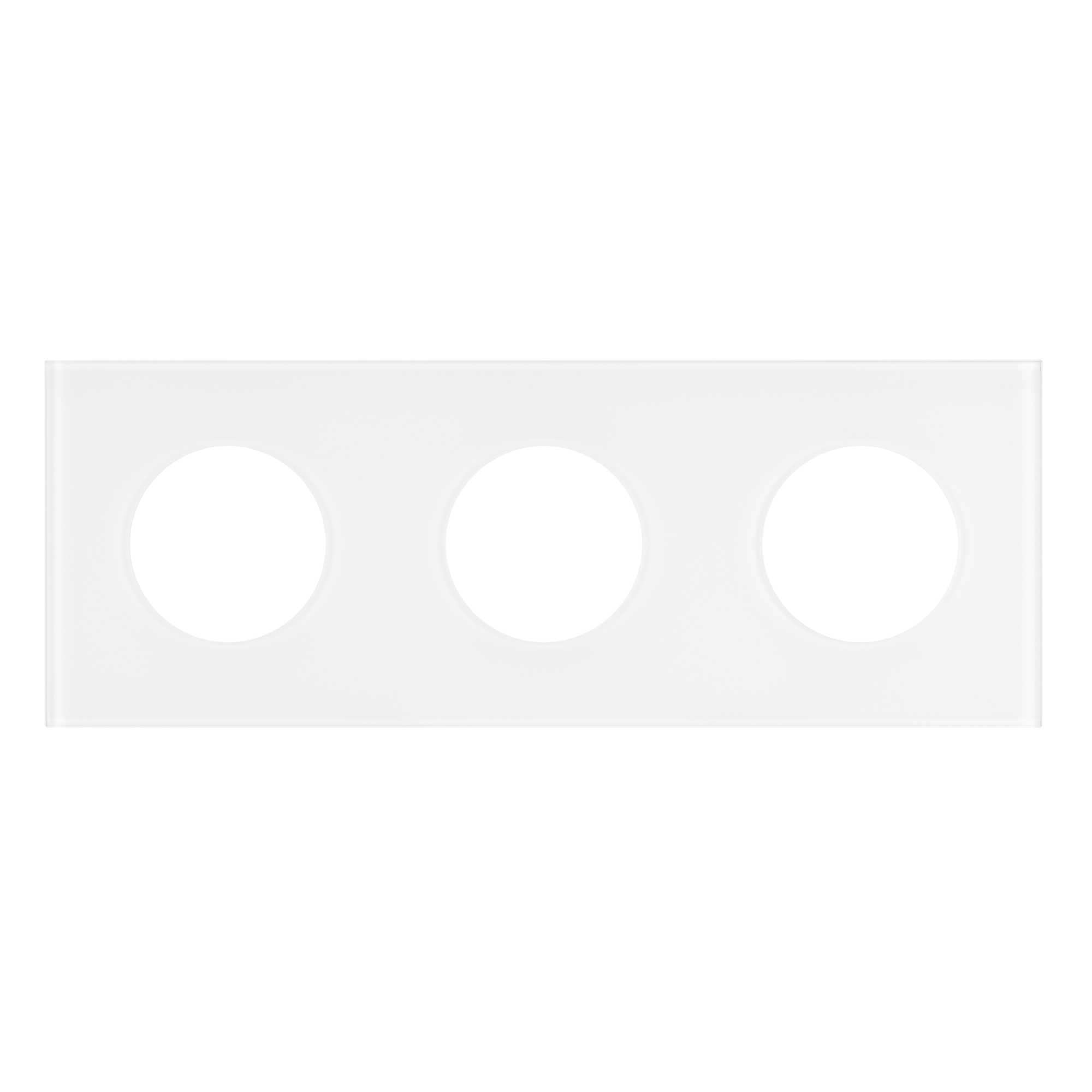 Рамка стеклянная на 3 поста, под встраиваемый механизм. Вырез под функциональную часть круг. Цвет - белый.  Ориентации монтажа - горизонтальная.