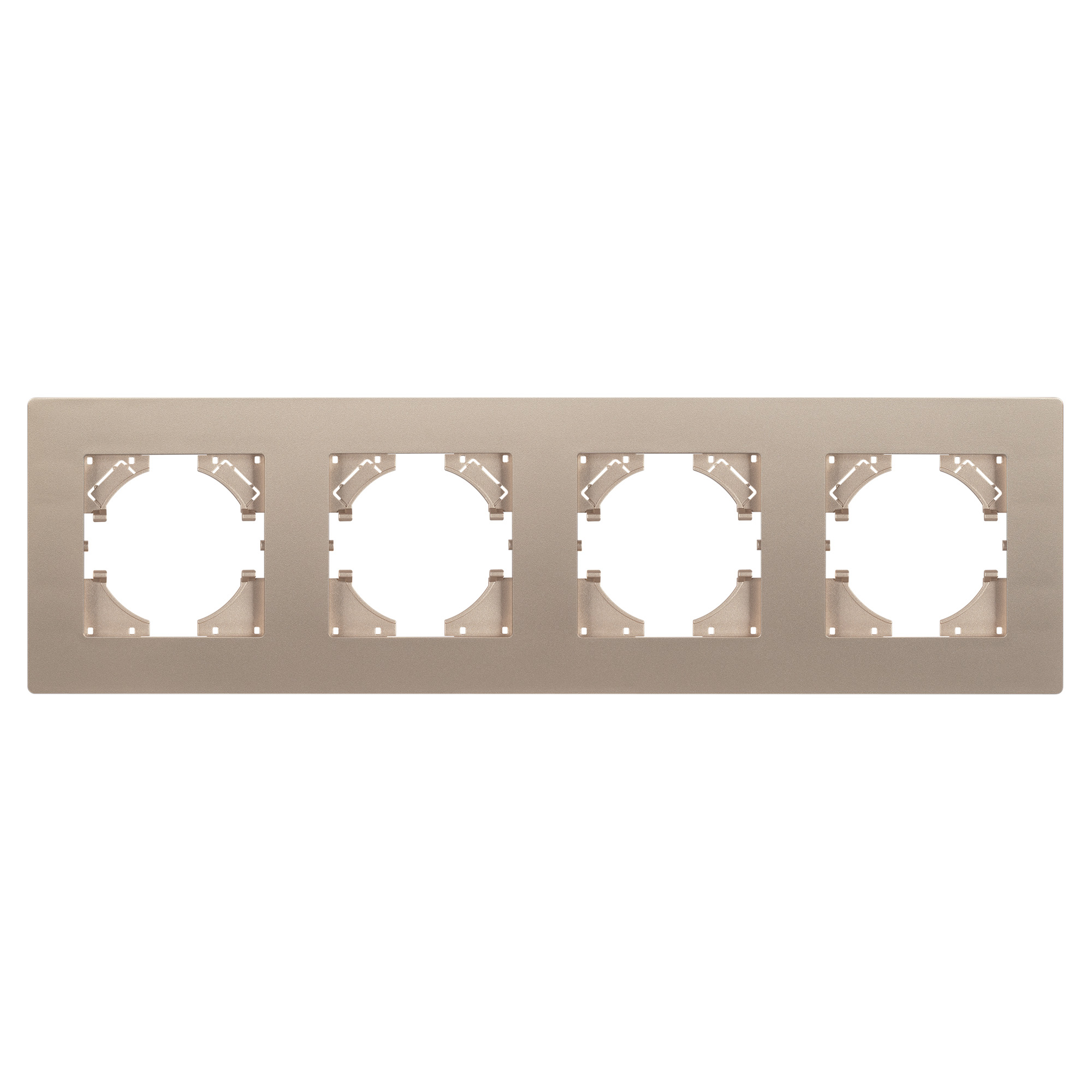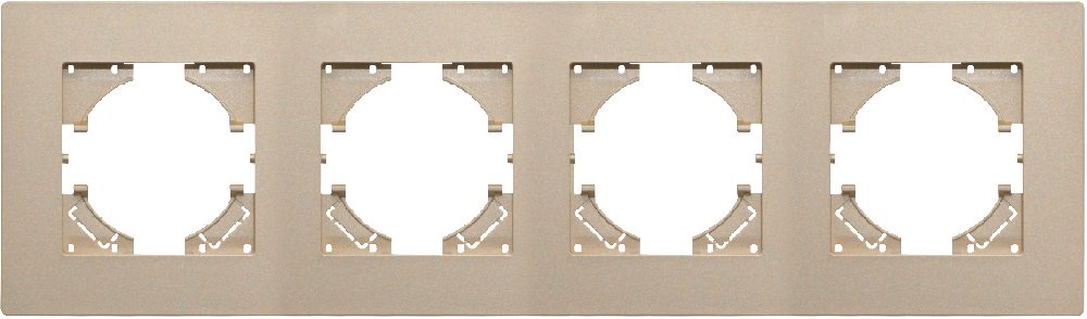 Рамка пластиковая на 4 поста, под встраиваемый механизм. Цвет - золотой. Среднего уровня герметичности IP20. Ориентация монтажа  - горизонтальная (основным ориентиром служат посадочные выступы для накладки механизма).