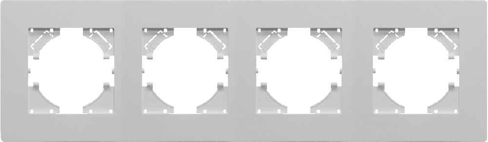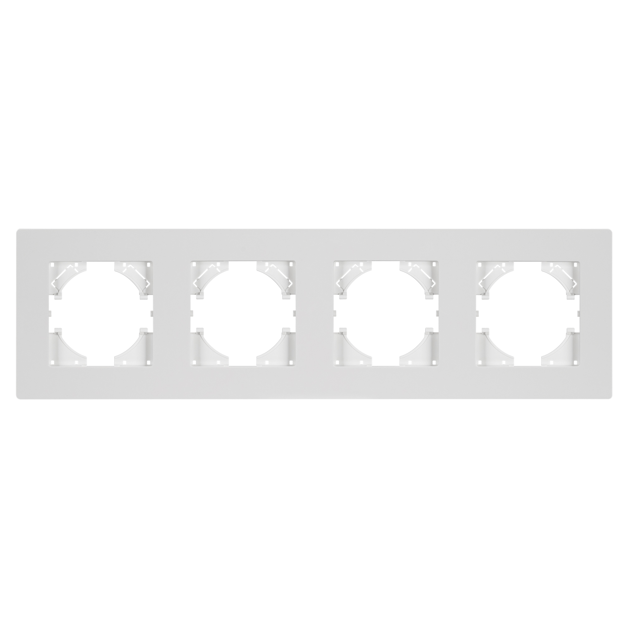 Рамка пластиковая на 4 поста, под встраиваемый механизм. Цвет - белый. Среднего уровня герметичности IP20. Ориентация монтажа  - горизонтальная (основным ориентиром служат посадочные выступы для накладки механизма).