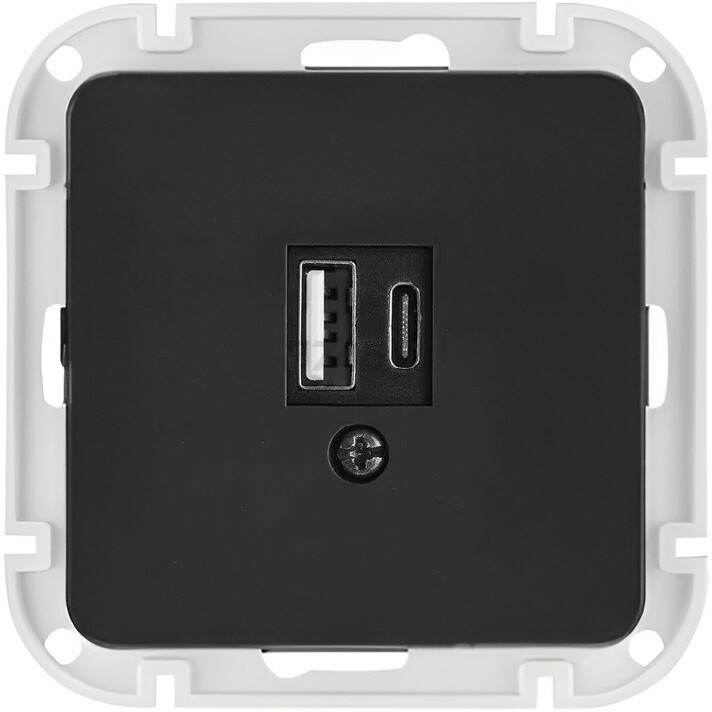 Розетка В Рамку  Одинарная USB+USB-C Карбон IP20 3А 5В РП5-6562 ASTRUM  Bylectrica