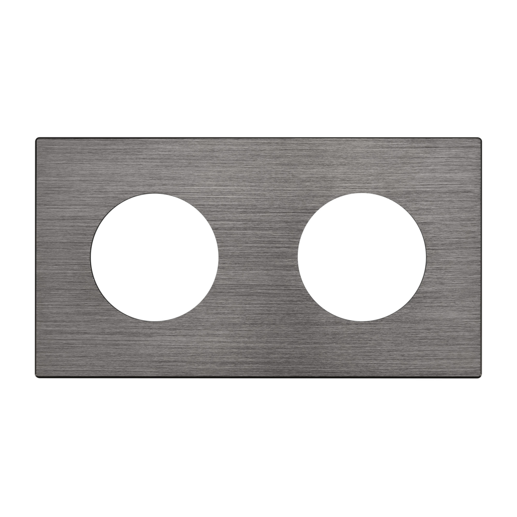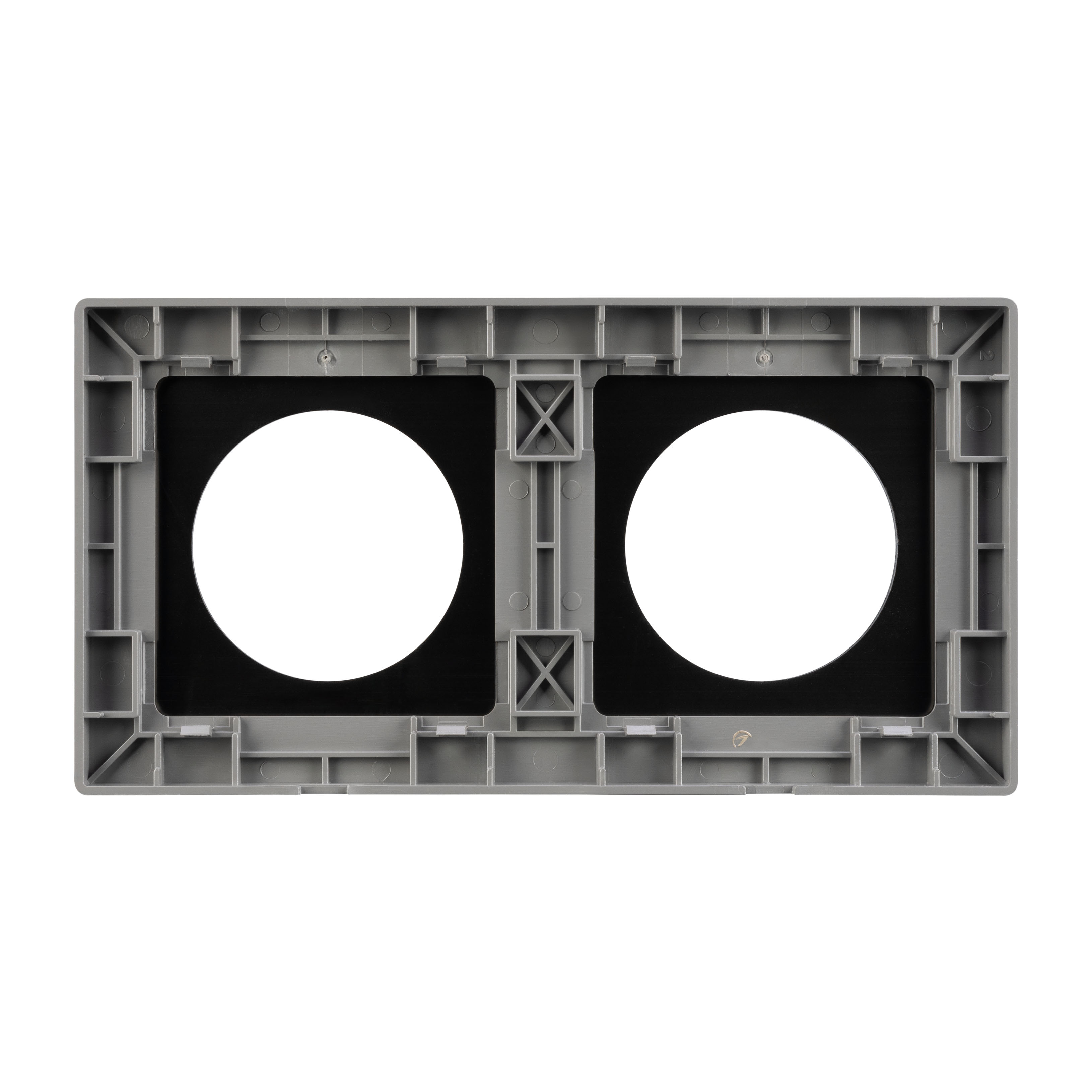 Рамка алюминиевая на 2 поста, под встраиваемый механизм. Вырез под функциональную часть - круг. Цвет - серый.  Ориентации монтажа - горизонтальная и вертикальная.