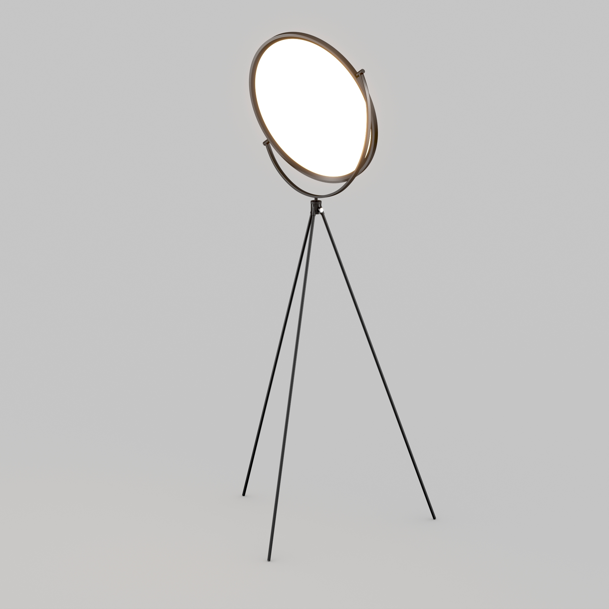 Декоративный напольный светильник с функцией Dim-to-Warm. Мощность 35 Вт, Dim-to-warm 1800K-3000K, CRI>90, угол 120 °, напряжение питания 230 В. Корпус из алюминия черного цвета, экран из PMMA, степень защиты IP20. Размер: диаметр диска 660 мм, диаметр излучающего модуля 595мм, высота с ножкой 1890 м. Длина провода 1300 мм, питание от сети 220-240V. Адаптер в комплекте.