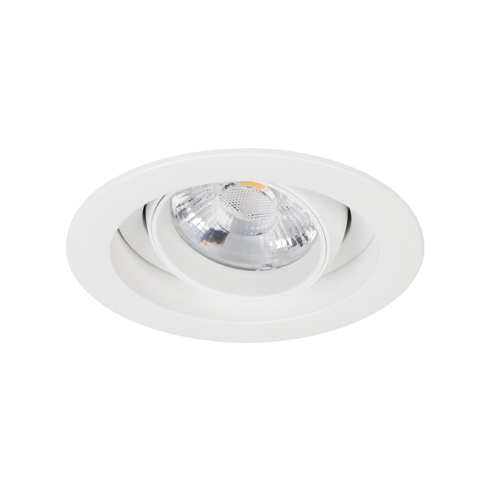 лм/Вт, дневной 4000 K, CRI>92, угол 20°, напряжение питания 230 В. Белый корпус из алюминия, белая вставка, степень защиты IP20. Размер: диаметр 90 мм, высота 80 мм. Монтаж встраиваемый, установочное отверстие: диаметр 75 мм. Драйвер 27-40 В, 300 мА, пульсация <2%.